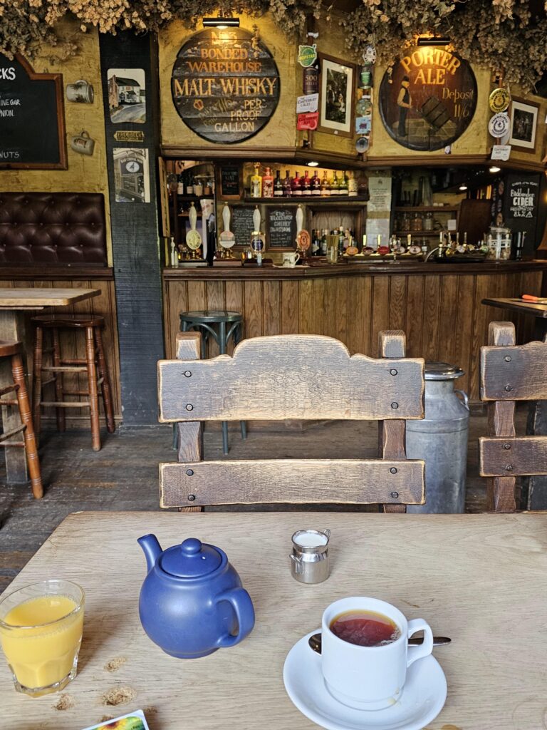 Since I didn’t want to drive back and forth in too much of a hurry, we had booked an Inn in Whitney, Bird in Hand. After settling in, we first went for a nice walk and then dived into the extremely atmospheric pub for a delicious pint of Bitter and a delicious meal.