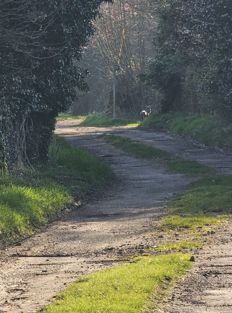 The next morning, during the morning walk, when we came around the bend, we were surprised by a fallow deer. At first, the deer and Charlaigne looked at each other in amazement and then reacted; The deer ran in front of us but stopped every time to look back. This only made Charlaigne crazier and I could barely keep her. Hence the bad picture! The rest of the hike wasn’t exactly relaxed.