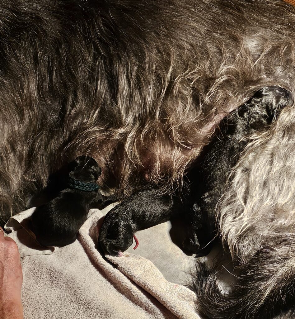 During the first difficult period, it was already clear that Charlaigne was a wonderful mother. She stayed with her puppies day and night and took excellent care of them.