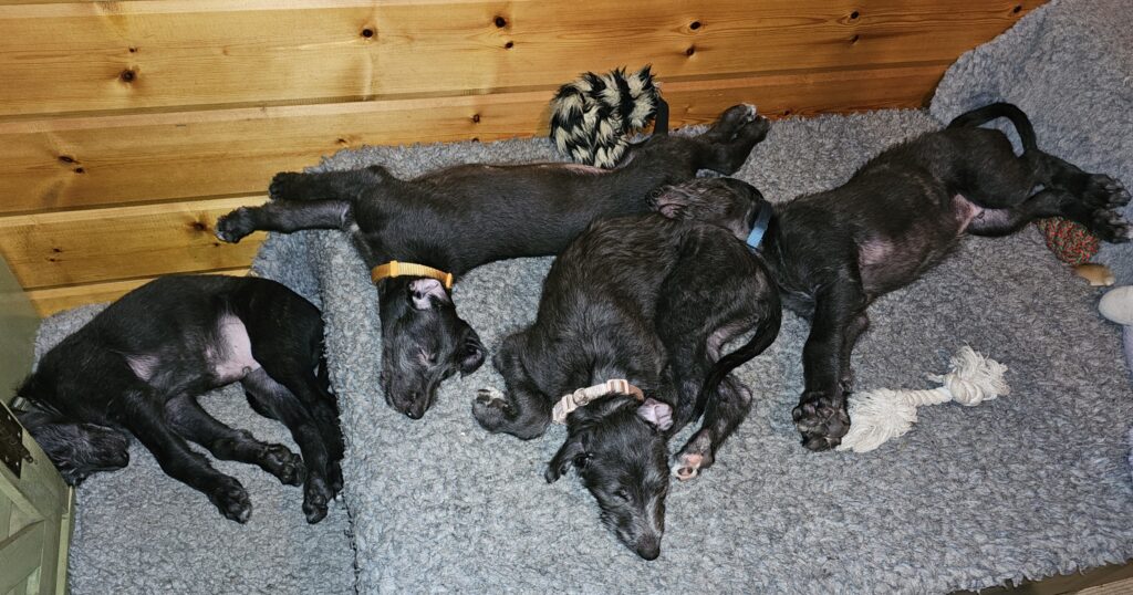 As is typical for Deerhounds, the difference between the sexes was clearly visible soon after birth. The males were true males and the females true females.
