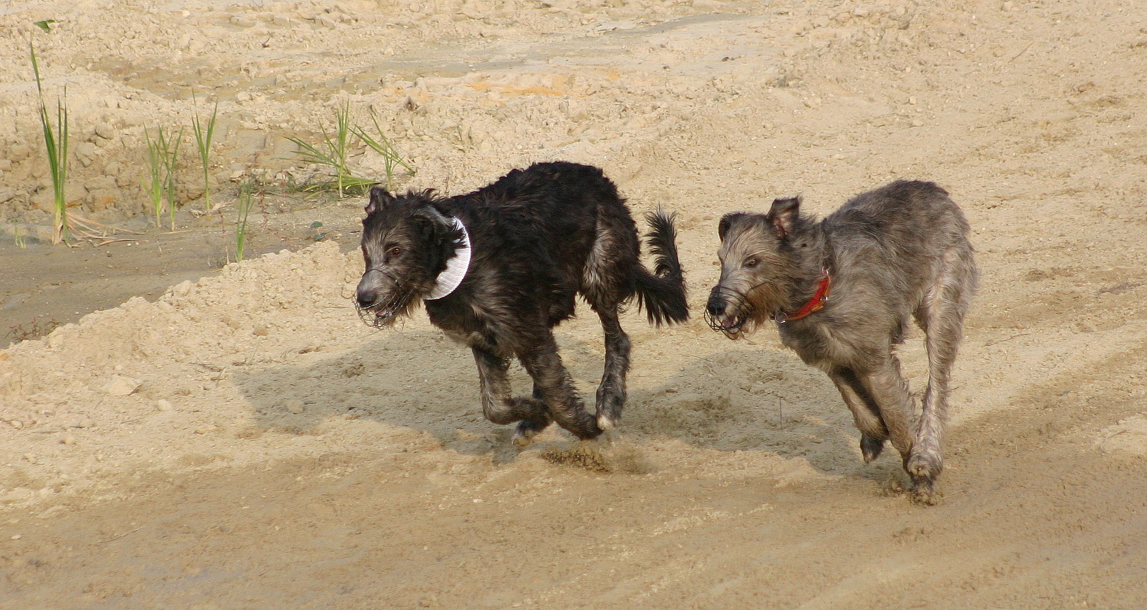 j. course: één loop van tegen elkaar uitkomende, tegelijk gestarte honden.