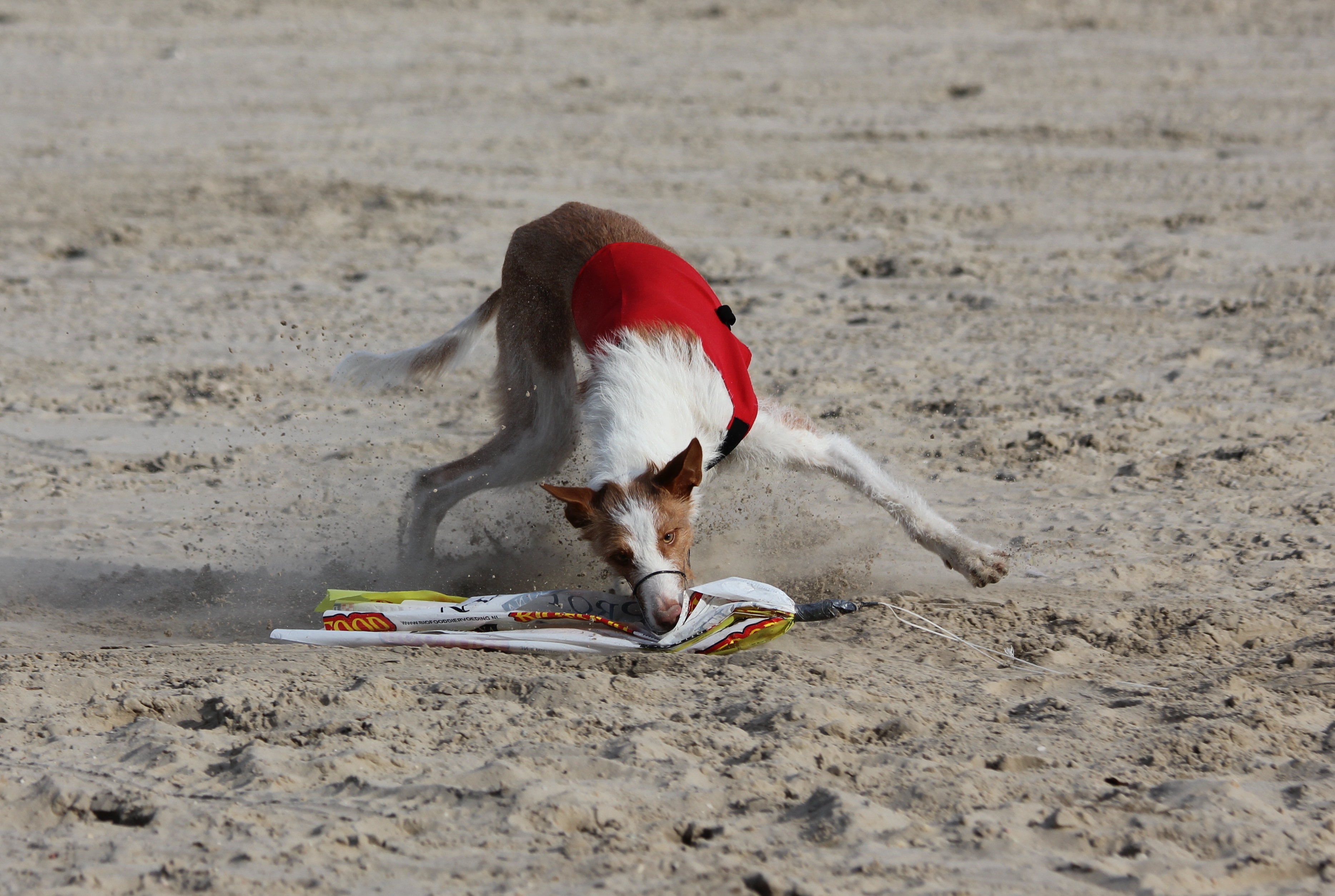 De ‘Herfstcoursing’ van WvCNL vond dit jaar plaats tijdens het weekend van 18 en 19 oktober. Daar Simon beide dagen was ingedeeld om te jureren zijn we donderdag vertrokken zodat we op vrijdag nog een relaxed dagje hadden. Sonja was ook gekomen met haar nieuwe camper zodat Brandir en Bernice weer een fijn weekend met elkaar konden doorbrengen. Op vrijdag konden beide deelnemen aan de training. We zouden Bernice eerst laten lopen en als ze niet zou starten, zouden we Calhoun en Brandir mee sturen. Maar na enige twijfel zette Bernice het op een lopen en liep de sterren van de hemel! Zou ze het toch weer leuk gaan vinden? Na Bernice dus Brandir met Calhoun. Brandir was zoals gewoonlijk niet te houden maar … hij ging ook super fanatiek van start! In één keer, zonder naar Calhoun te kijken, ging hij achter het haas aan. Wat waren wij blij! Zou ook hij het weer leuk gaan vinden? Dat zou toch wel fantastisch zijn.