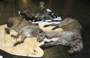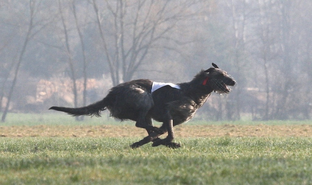 Op zondag lopen dus de Deerhounds. Er zijn er 18 gemeld en 16 aanwezig waarvan 2 reuen: Cunamara’s Miles van Eva Petzold en Calhoun. Ze lopen in de derde course. Calhoun toont zich zoals gewoonlijk zeer enthousiast maar als ik hem los laat bij de start loopt hij de eerste 50 meter zeer twijfelachtig. Daarna geeft hij gas en loopt fantastisch, Miles heeft het nakijken. Read the rest of this entry »